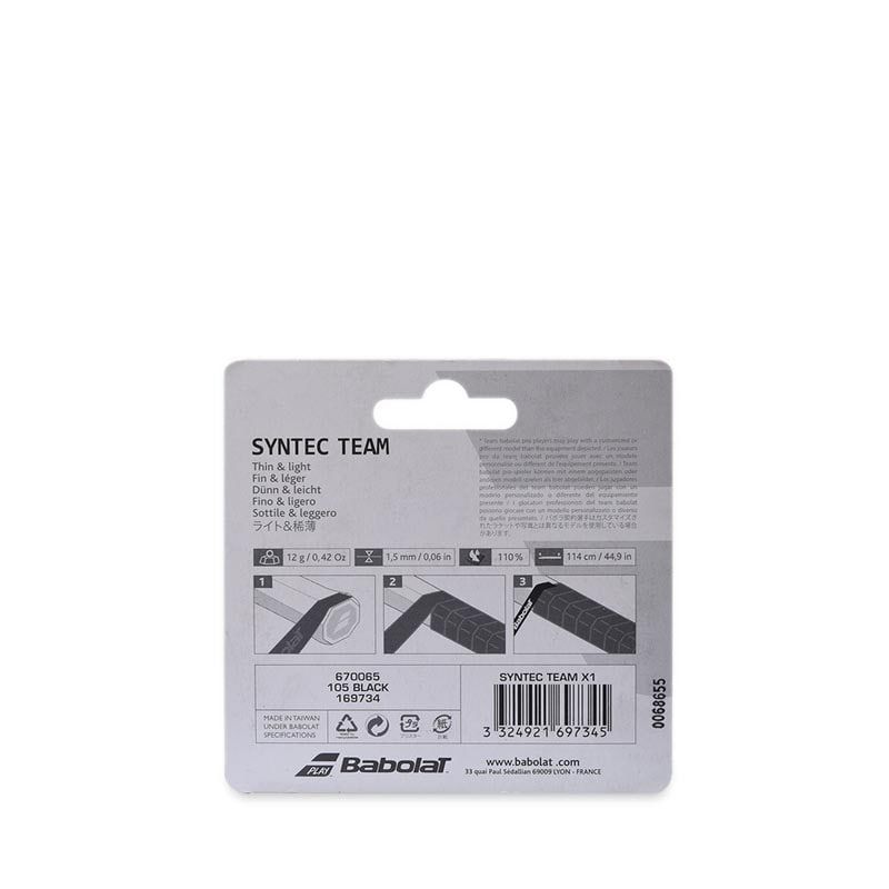 Babolat 2019 Syntec Team Tennis Grip - Black Genggaman Babolat Syntec Team ini adalah campuran sempurna antara Syntec Lite dan genggaman Skin Feel. Model 1.5mm ini akan memberi Anda kemahiran maksimum dan sangat ringan (12g).
