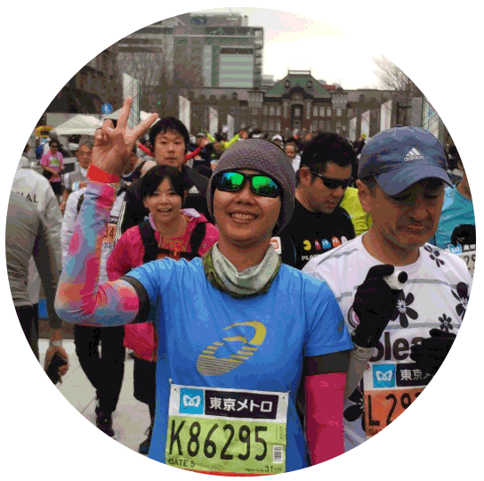 Meski demikian, bukan berarti semuanya mulus. Di km 23, bokong mulai terasa pegal. Rasa sakit ini meningkat hingga pace saya lambatkan di km 28 dari 5:42 ke 6:30, bahkan sampai 7:30 di km 30 dan 31. Untuk meredakannya, saya menyemprotkan muscle spray yang ditawarkan para penyemangat masyarakat Jepang. Di km 29, saya tiba-tiba sakit kepala seperti mau pingsan. Untuk mengatasinya, saya makan dua energy gel dan satu elektrolit. (Belakangan, saya mengetahui bahwa sakit kepala tersebut karena efek kedinginan dan sebenarnya tidak berbahaya). Di tengah semua kesakitan ini, saya melihat keluarga saya di km 31. Wah… rasanya seperti mendapat second wind. Setelah itu, entah karena efek energy gel, bertemu keluarga, atau strategi lari pelan dulu di awal, saya mendapatkan tenaga kembali. Di 10 km terakhir, saya berhasil menaikkan pace secara bertahap ke sekitar 6:10 – 6:15 dan finish di 4:33. Artinya saya memangkas 37 menit dari catatan waktu Tokyo Marathon terdahulu. Ini menunjukkan bahwa saya berhasil mengeksekusi rencana dengan baik dan saya puas dengan hal ini. You learn in every marathon. Kali ini saya belajar bahwa persiapan yang baik harus dilakukan dan dukungan keluarga sangat berarti. After all that’s why I run; to live my life fully with my family.